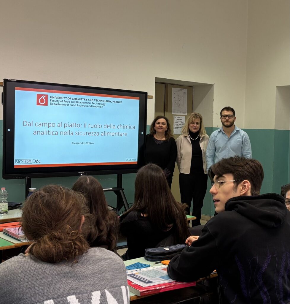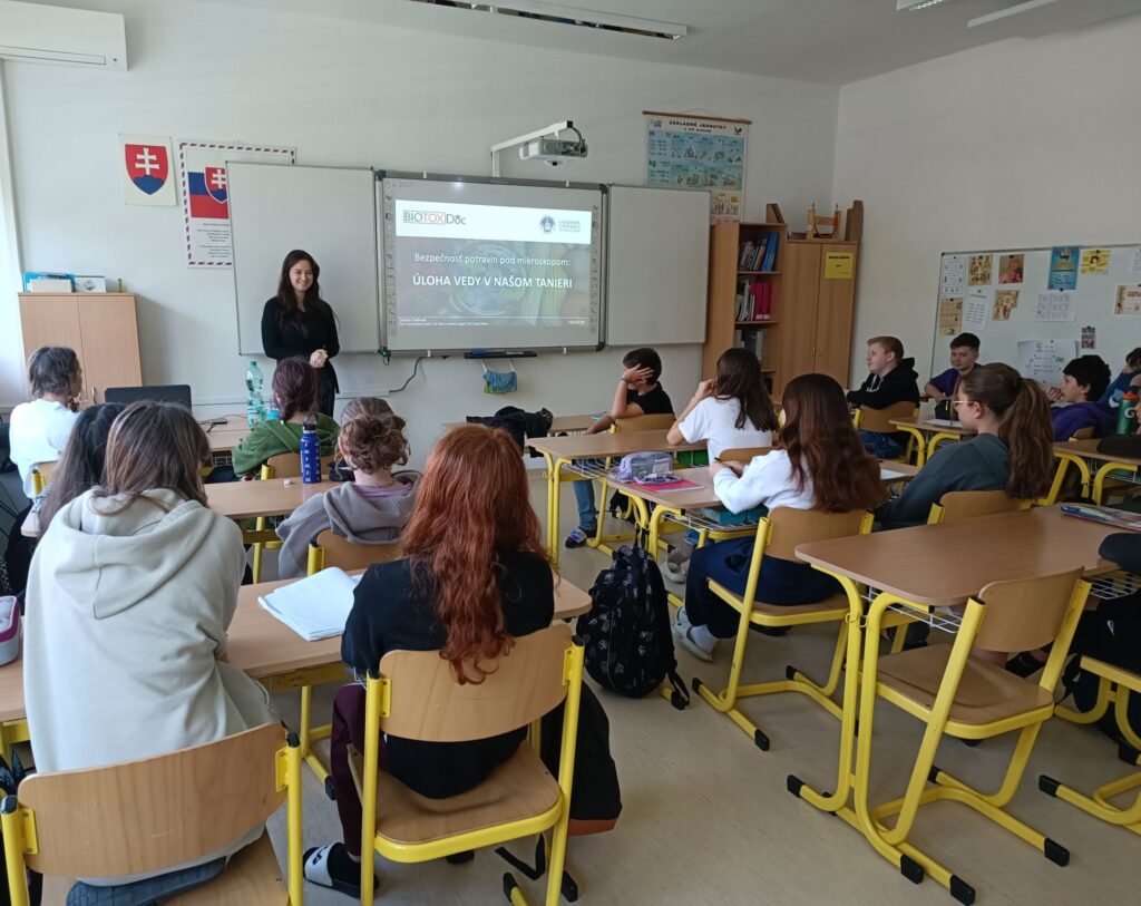BIOTOXDoc is contributing to open science by bringing research directly into classrooms. During 2025, the PhD candidates Darina Balková, Klaudia Moskot, Idoia Páramo Castillejo, Filip Petronijevic, Elham Atallah and Alessandro Volkov returned to their former secondary schools and universities in Slovakia, Czech Republic, Poland, Spain, Serbia, Lebanon and Italy to engage with students and share their passion for food safety research in a changing climate.